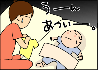 ウチの子もすごい汗かきやねんけど、無理矢理夜は長袖(笑)