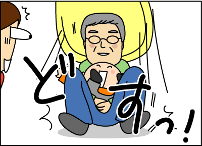 じいさんお尻から着地。その後もすべりたがる息子。
