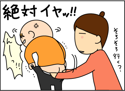 急におまるに座る・・というか、ズボンを脱ぐのを嫌がるようにノ∇・、)