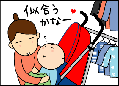 買った服と息子とベビーカーを背負って、必死で階段おりました・・。