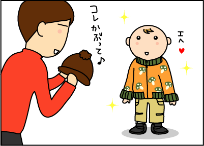 この服には茶色のニット帽が絶対にかわいいのにぃ。。