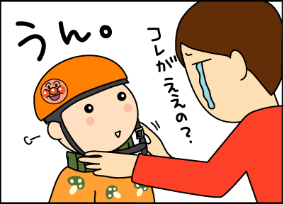 アンパンマンのヘルメットごときで泣かなくても・・と思うのですが