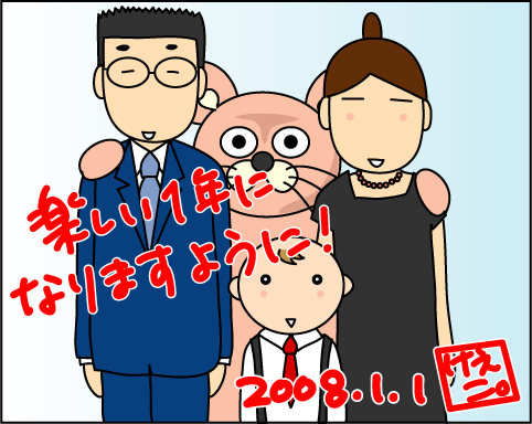 あけましておめでとうございます。今年も拓人くんとけえこさんたちの楽しい毎日の記事を楽しみにしています。私は昨夜、2007年の最後の最後に発熱してしまい、アイスノンしながらの年越しとなってしまいました。年末、娘が風邪をひいたので、もらってしまったのかもしれません(涙)