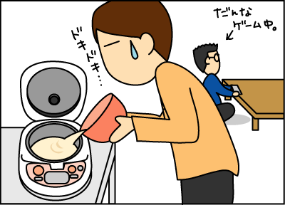 コーヒーをいれる5分くらいの間だけ、炊飯スイッチを押しました。