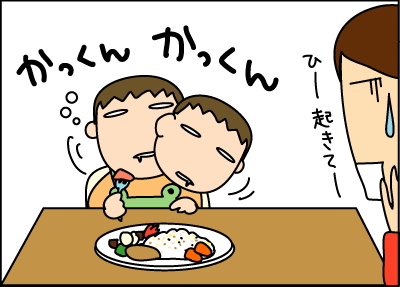 子供ってご飯食べながらとかすっごい器用に寝ますよね。