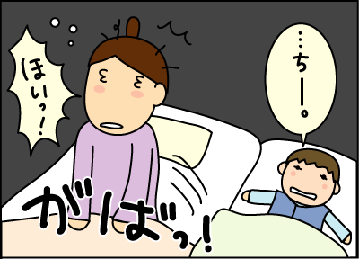 寝てても、おしっこで完璧に目を覚ますってすごーい。うちは、4歳児なのに未だに夜は紙おむつですよー。