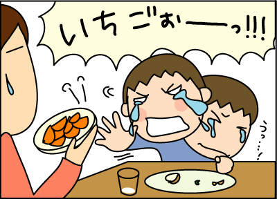 本当に朝から大変でした。叱って食べさせてみかん出しておお泣きされて・・。