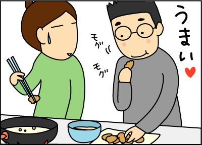 実は、2種類作ったんです。Aの味付けの方が好きですが、衣はBの方がすきかも・・。