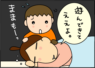 起きて遊びたがる息子。