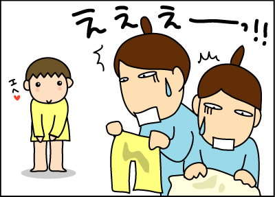 すぐに息子をトイレに連れていき、ちっこをさせる。