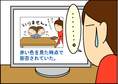 ケチャップでアンパンマンの顔を描いてみましたが、逆に機嫌が悪くなりました。。