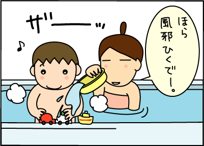 私もお風呂で一生懸命遊ぶ佑太に肩が寒いだろうとお湯をかけてやります。私も近いうちにお湯をかけらるだろうな・・・拓くんのキラリのお目めが出ましたね!佑太は4月4日から約10日間ロタウィルスにやられました。前にブログ見て大変だなって思ってたら、保育園で大流行です。年末はノロウィルス、春にロタウィルス。ロタウィルスの方がきつかったです。けえこさんもあと少しですね、体気をつけてね!!拓くんママに優しくお湯掛けようね~頭から!!(^^;)