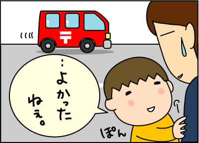 次男クンもお散歩に出られるようになって郵便車を見つけたら、次男クンにも「よかったねぇ」