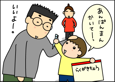 旦那も息子のために頑張って描いた。