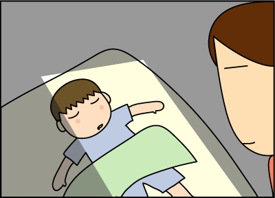 何も知らずに眠っている息子。