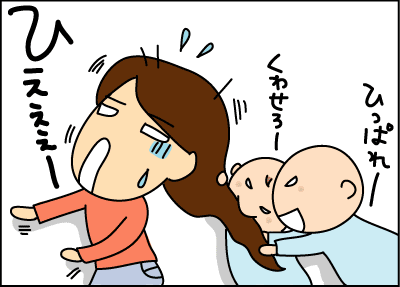 小さい手で少しだけ髪を引っ張る息子。