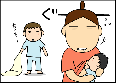 夜授乳、おしっこ・・・昼は拓人君との生活リズムもあるし、陸人くんがねたと思ってもお兄ちゃんの声で長く寝てくれなかったりして、お母さんはほんとず~っと寝不足状態ですよね。