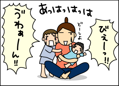 そして、その次男の泣き声で長男が泣く。