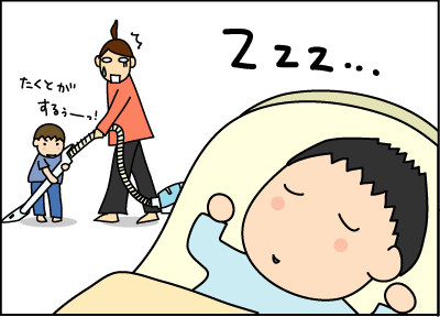 拓人の攻撃から逃れつつ、掃除機をかける。