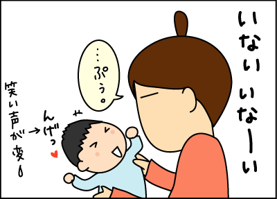 うちの次男も同じように「うげっ」って笑います。最近は少し進化して「うげ、えへえへ」に成ったかな?でも夜は大絶叫空腹コールです。