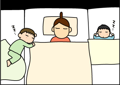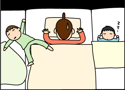 子供って本当に寝像悪いですよねー。でも、寝顔がかわいいので、許せちゃうんですけれど。