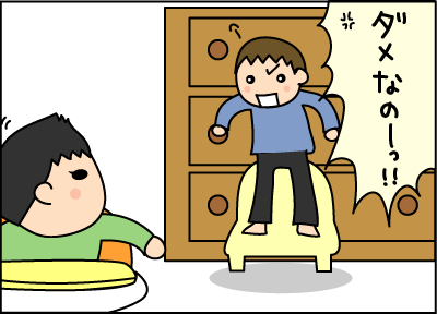 イスの上に乗って守りだした。