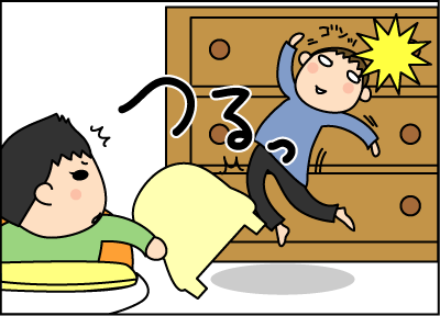 イスから落ちて頭を強打。