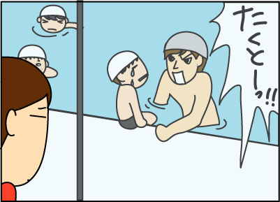 プールサイドから逃げずに頑張ったね。とも言いましたが、