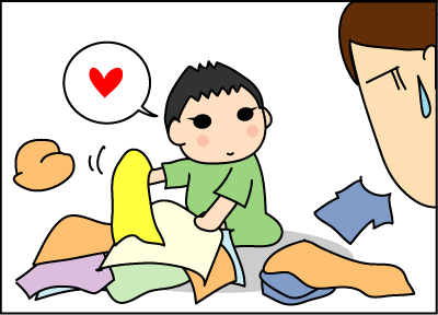 洗濯物を畳む時間>陸人がむちゃくちゃにするスピード