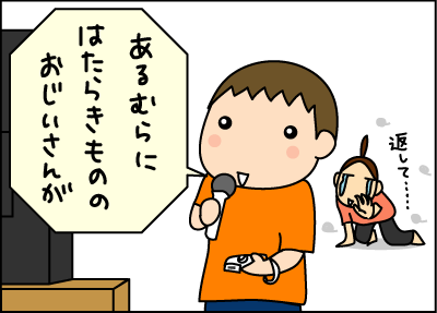 拓人くん、もう上手に物語までやりきってしまうとは!!私の従兄弟(今14歳)は上手に喋れる様になるのが遅くて親戚中で心配していました^^;