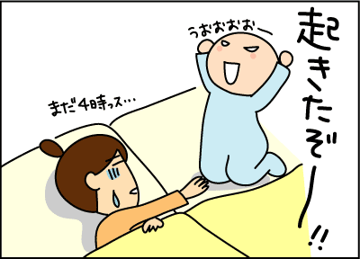 拓人は「起きまちた・・。」て感じの起き方じゃなくて「起きたぞーーー!」って感じなんです。