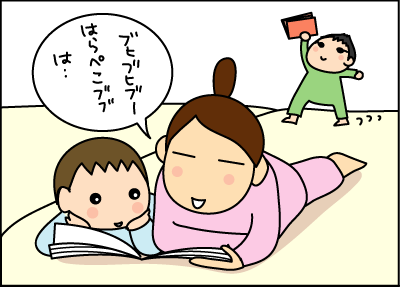 二人で横になって、ゆっくりと絵本タイムを楽しんでいた。