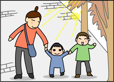 「拓人!散歩に行こう。みんなで歩いてみよう。」