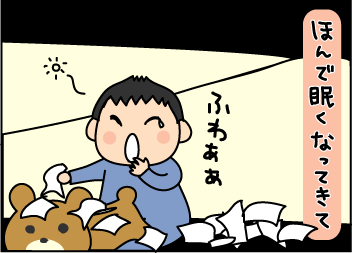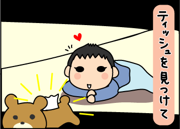 ティッシュで遊ぶのもいいけど、起きたんやったら