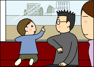 電車に乗って、家族4人で出かけた。