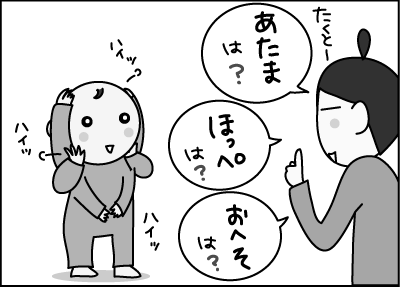 「ママの頭はここ。陸人のあたまはどこ?」