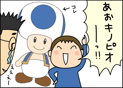 拓人くんがマリオで、ママがルイージ、なるほどね。マミィさんのピーチ姫もクスッとさせられましたが、パパがあおキノピオはいいですね。でもクッパは悪者だから、パパを悪者にはしたくなかったんじゃないですかね。楽しそうですね♪