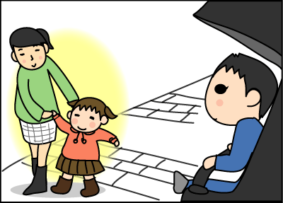 と厳しく言い聞かせると 10分位は手をつないで