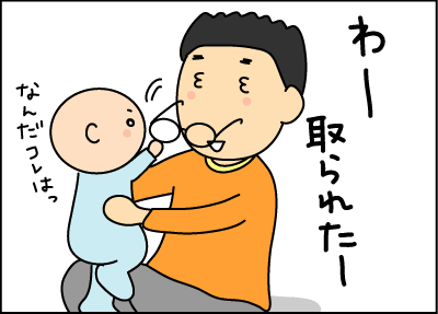 旦那さんのメガネを取る拓人。