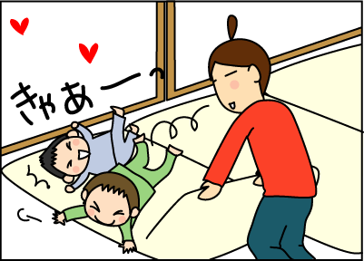 あ~っ、わかります。子供って布団大好きですね。邪魔しないでって言ってるのに、二人してコロコロ邪魔してくれます(笑)