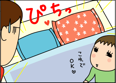 しかも、拓人くんの行動すごい分かります。うちは枕は並べないのですが(私、枕があると寝られないんです)べったりくっついてくれます。両側からの温かい攻撃も分かります。やることいっぱいあるのに寝ちゃいますね(笑)