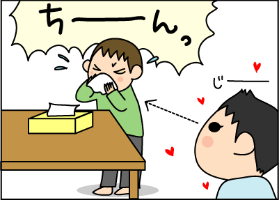 いました。ティッシュを出してちょっとだけ鼻を拭いて