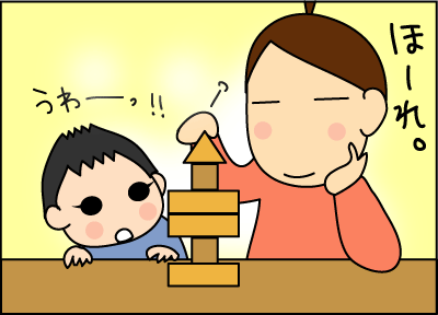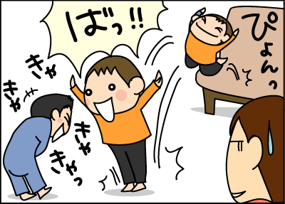 わかります!!なぜかお兄ちゃんが「わぁっ」って言うだけなので、娘は爆笑です。お兄ちゃんの方は、みちこさんが書かれているように、スキあらば知らないお兄ちゃんお姉ちゃんにも遊んでもらおうと、すっごい近くからアピール満点で見てます(笑)