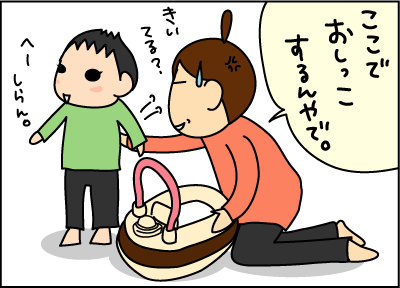 陸人は、すぐ飽きて違うところでおしっこしちゃうんですよね。