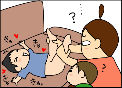 足を持たれて、右へ左へ。裏に表にひっくり返されて