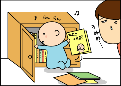 戸棚を開けて中を出しまくる息子。