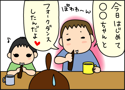 自分のことだけでなく、ちゃんと周りにも目を向けられるようになったんだね!との喜び半分。あと名前を聞いた子達が実際TVみたいに手をつないでたりするのかと気になっちゃうのが半分、てカンジでリポーターばりに突っ込んで聞いてる悪い母デシタ(´艸`)