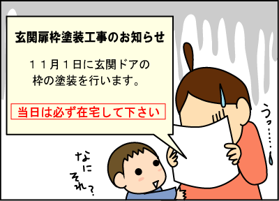 出産当日にかも!て日に、「玄関窓枠塗装工事」って言われてもねーwww
