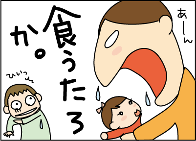 最近はアンパンマンの影響でぱくっとしたら、力が出ないよぉ~新しい顔くださぁいって言われます。