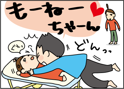 でもお風呂上がりやトイレの後に、お兄ちゃんに「オムツはかせたげて。」「ズボンはかせてあげて」と言うと「もう!!じっとして!!」って言いながらやってくれてます。娘も自分で足入れてはいてるんですが、お尻がひっかかって助けが必要なんですよね。